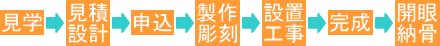 採石→石材加工→彫刻→基礎工事→外柵工事→墓石据付→完成検査→引渡しへ